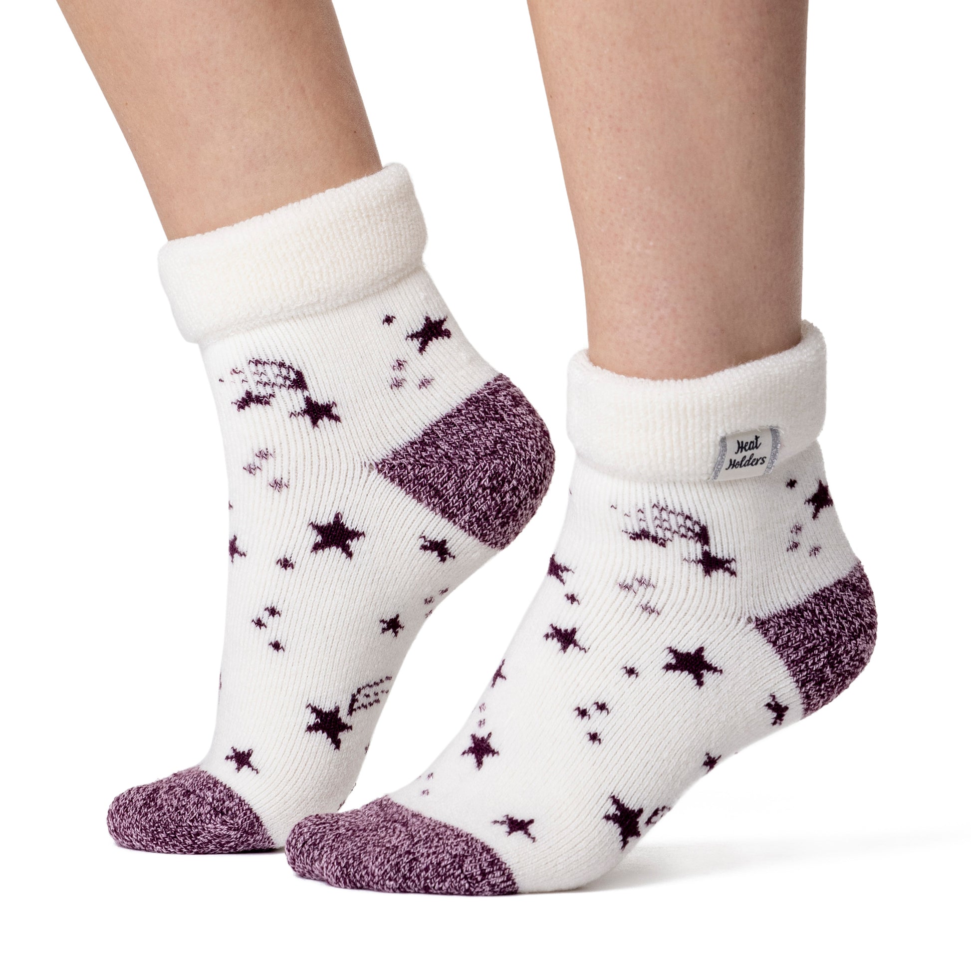 Ladies Lite Orion Sleep Socks with Turnover Top - Ivory & Cabernet Stars